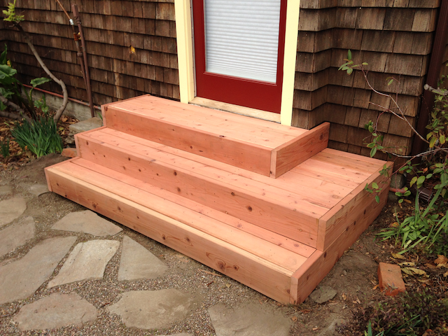 To make things a little harder, this is a three-dimensional problem. The stringers have to line up both in terms of height and in terms of depth. It really is a lot of things that have to be nearly perfect all at the same time. But, with the technique I use I end up with perfect stringers and therefore building sturdy steps is easy once they are in place. Check these out: