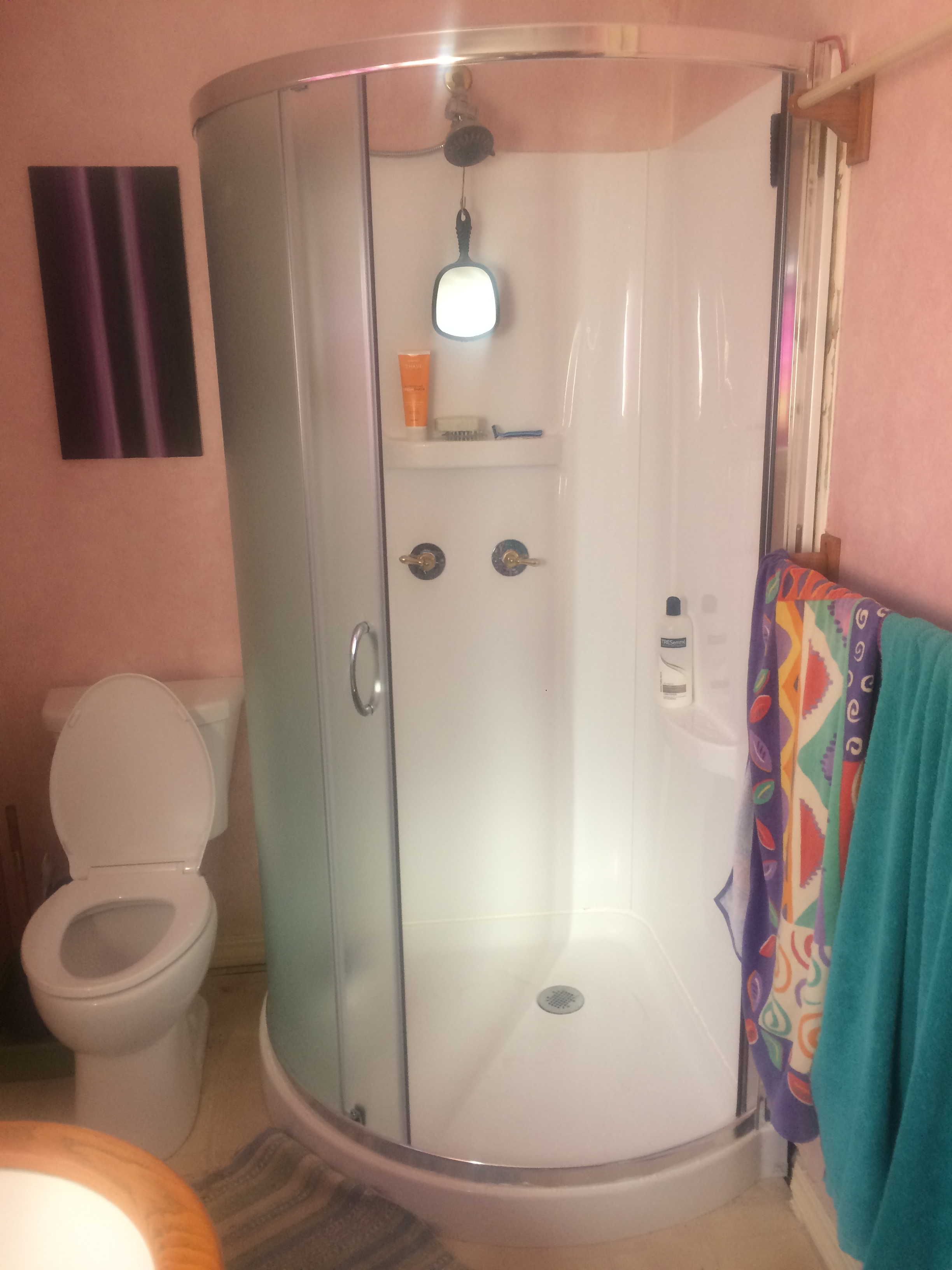 I removed an old corner shower unit and replaced it with a brand new one in my own home. You might need a general contractor for this work in your home. I also replaced a small spot of water-damaged wallboard with a fresh piece. The new kit was complicated to assemble - two curved sliding glass doors that form a semicircle. The job was more complicated because the floor leaned slightly away from the walls making the doors not fit. But a thin shim at just the right spot made everything fit perfectly.This took about 10 hours to complete this much of the project